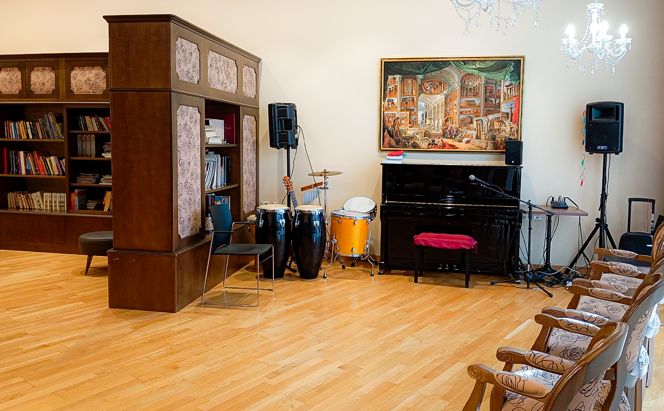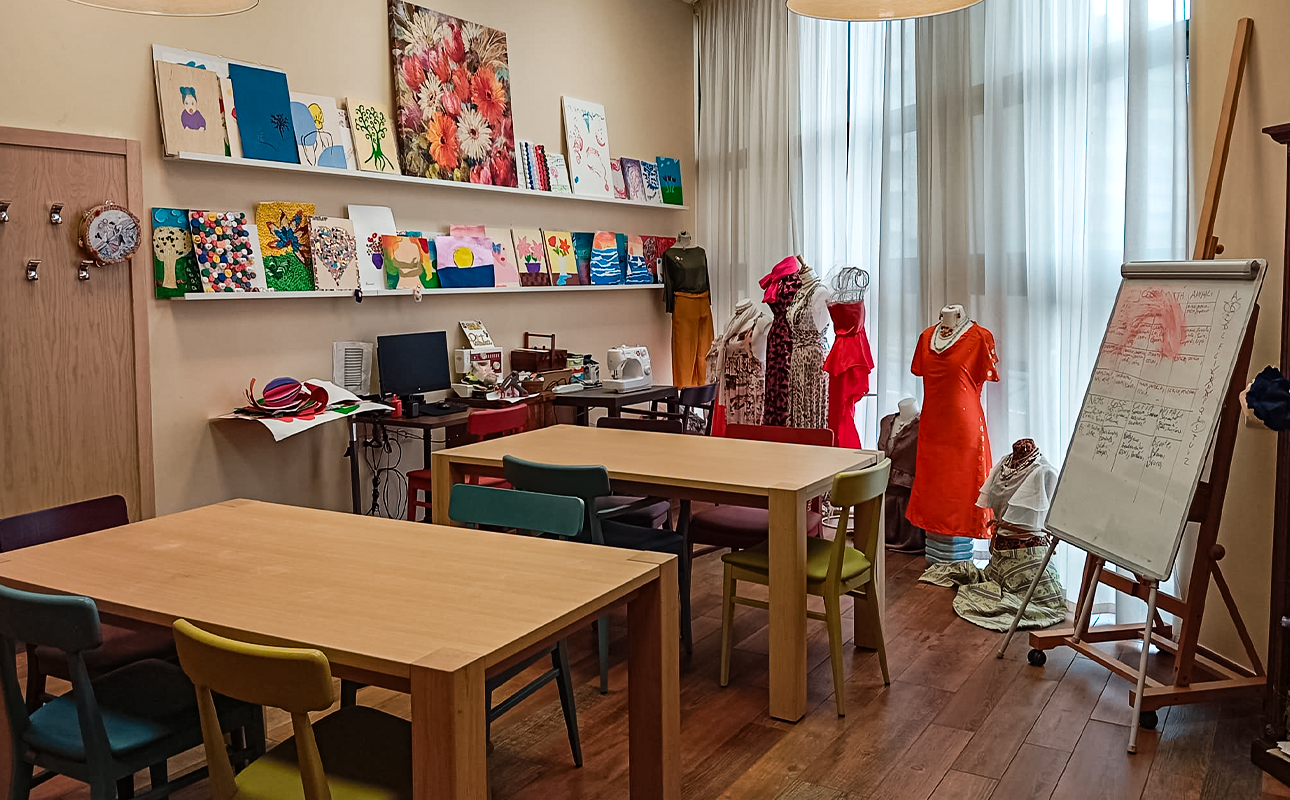 Un percorso creativo personalizzato: sale dedicate alla musica, lettura, artigianato e pittura, con strumenti, libri, materiali e colori. Ogni residente può scegliere l’attività più affine alla propria storia, riscoprendo competenze, stimolando la mente e alimentando l’autostima.