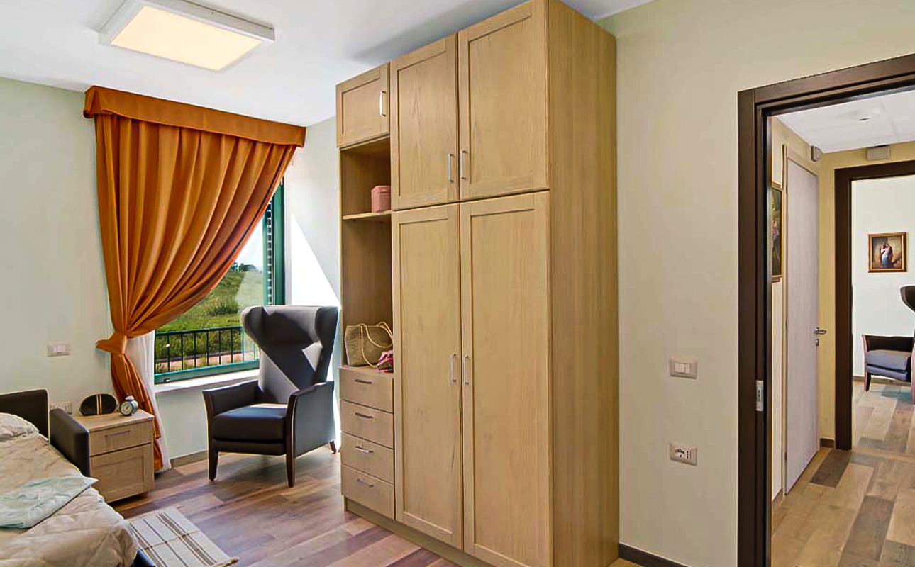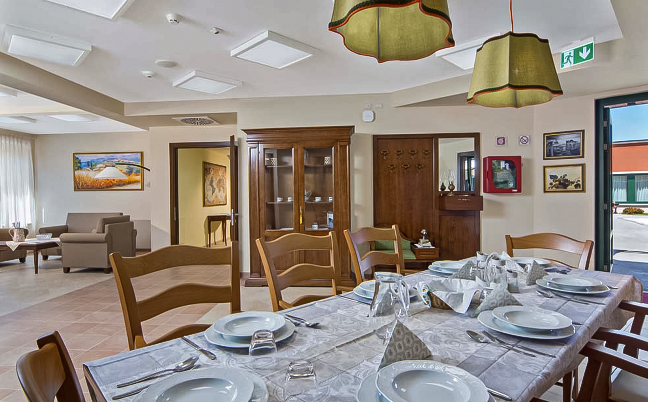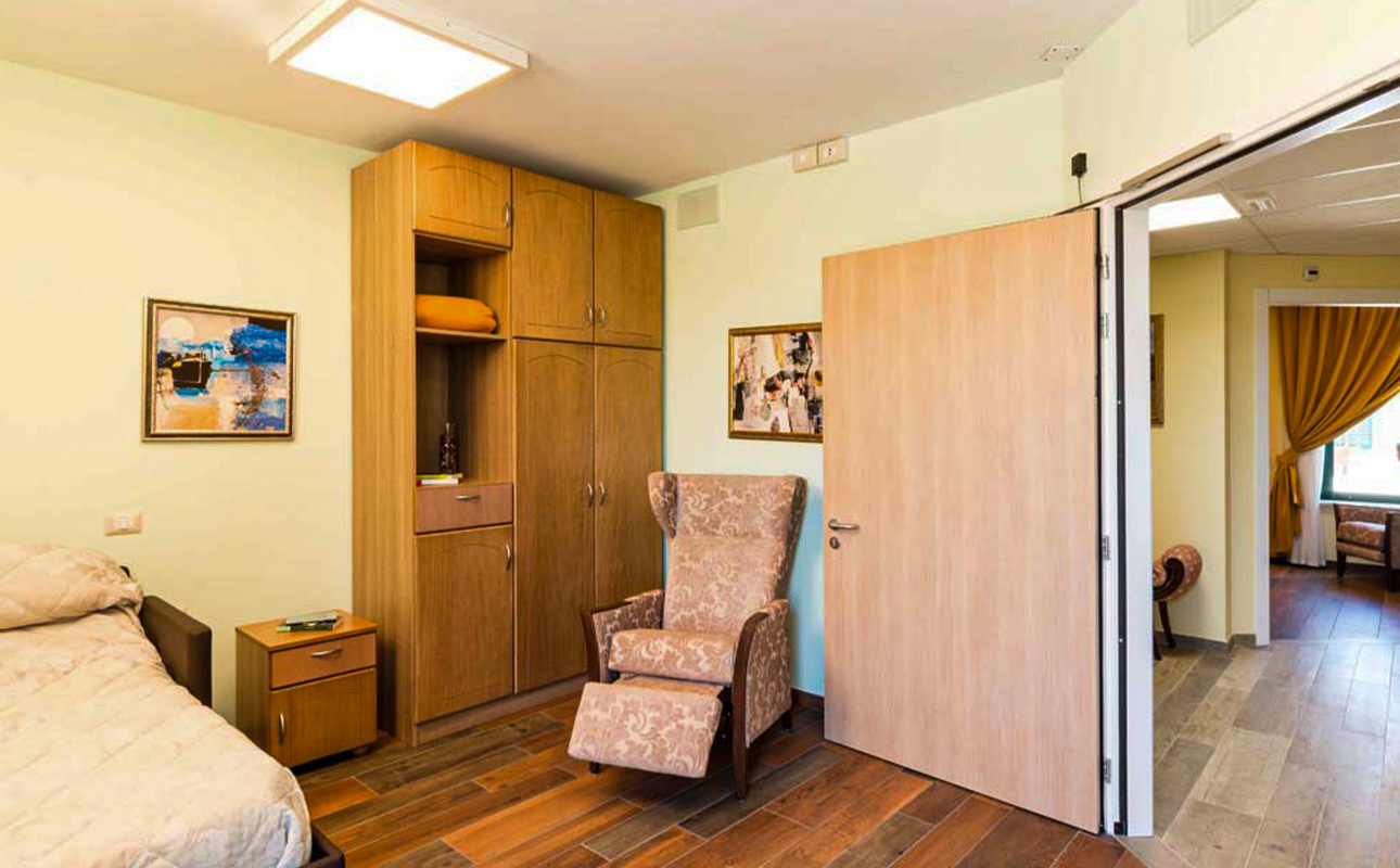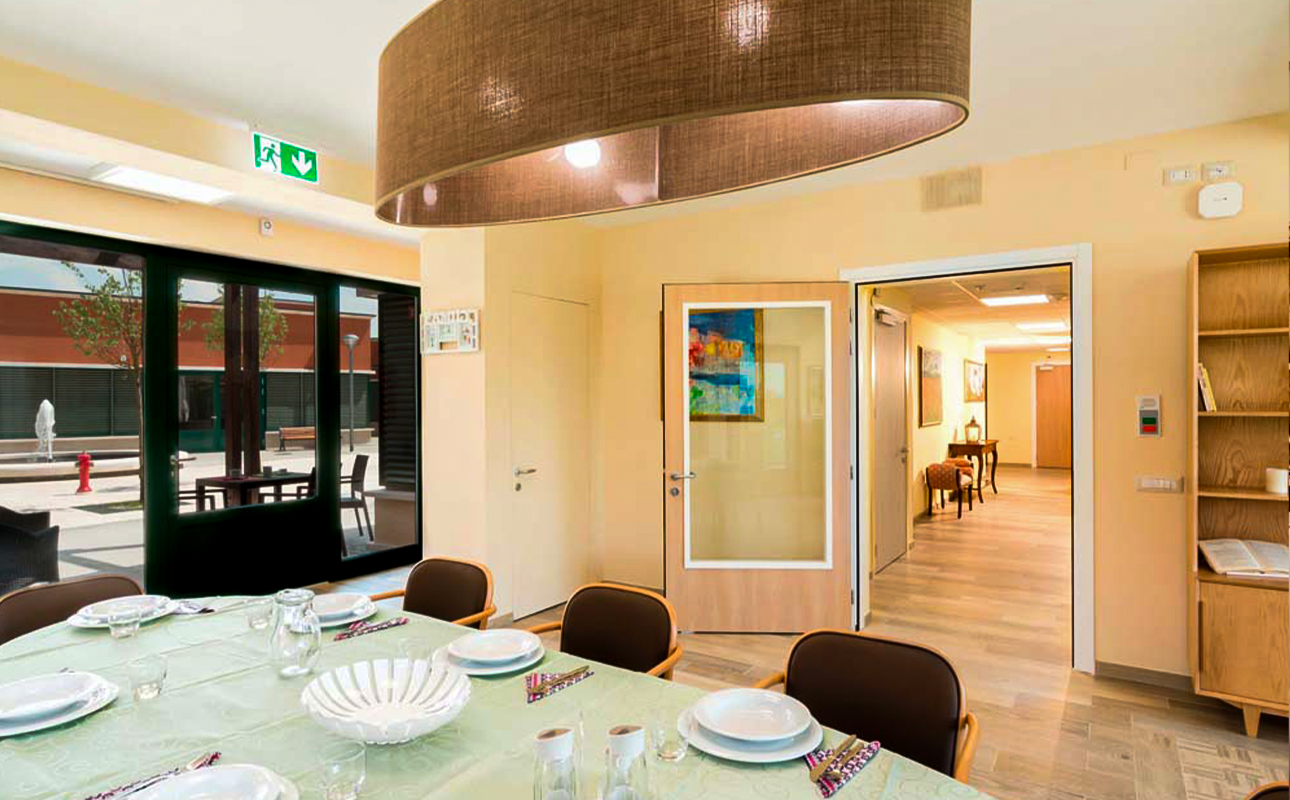 Nel periodo della pandemia, per colmare l’assenza del contatto fisico — essenziale per chi vive con l’Alzheimer — è nata la stanza degli abbracci. Uno spazio protetto, con una parete in plastica morbida e maniche in materiale da incubatrice, che ha permesso a familiari e residenti di tornare a toccarsi, stringersi le mani, condividere una carezza. Un gesto semplice, ma essenziale per mantenere viva la memoria emotiva e contrastare il senso di solitudine.