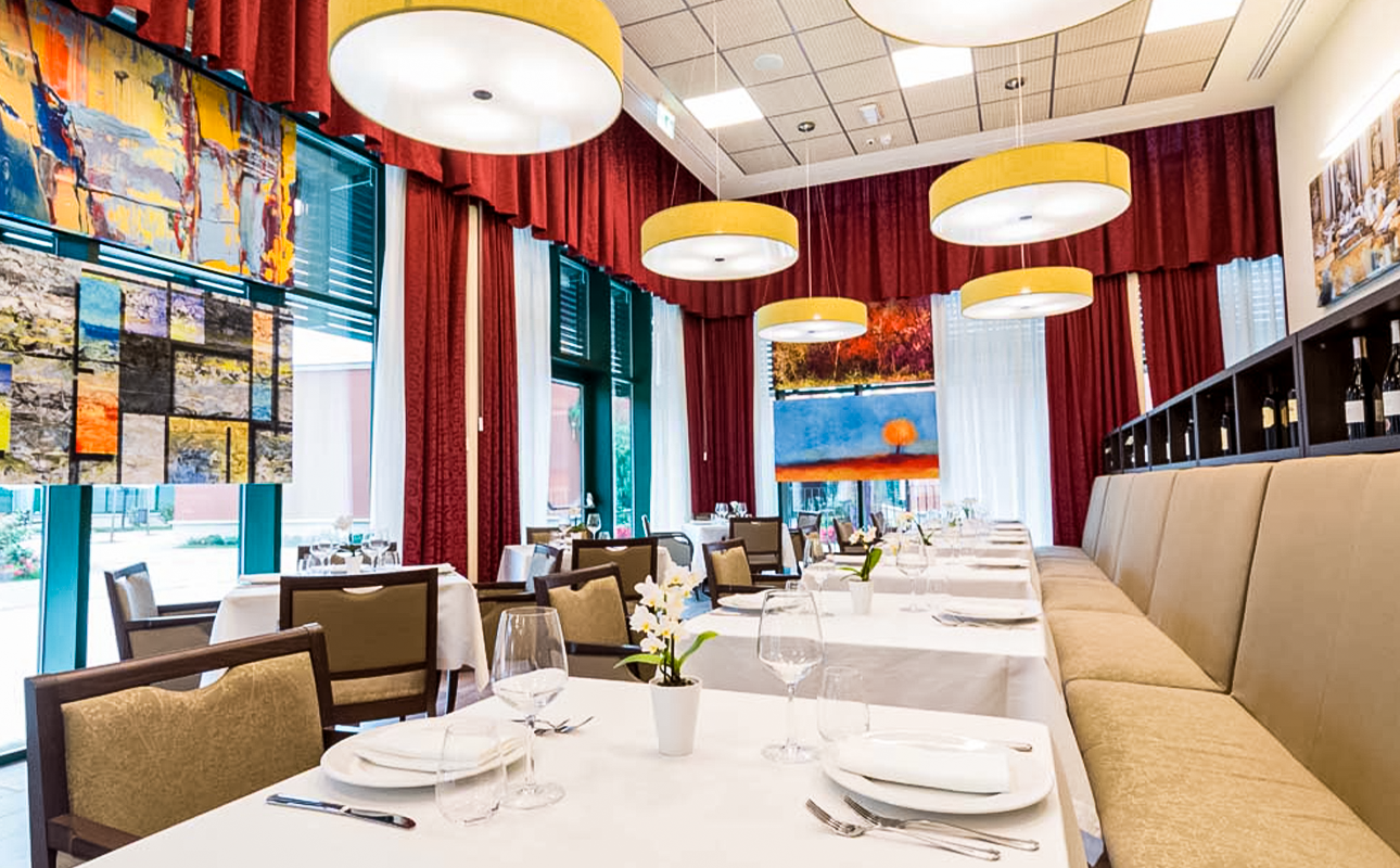 Un bar moderno e un ristorante guidato da uno chef esperto sono aperti ogni giorno, anche la domenica, ai residenti, ai loro familiari e al pubblico esterno. Il ristorante offre sia un menu fisso sia un menu à la carte che cambia quotidianamente, per un’esperienza culinaria di qualità. Sia i residenti che gli esterni possono prenotare, per pranzo e per cena, al numero 06.872089281-2.