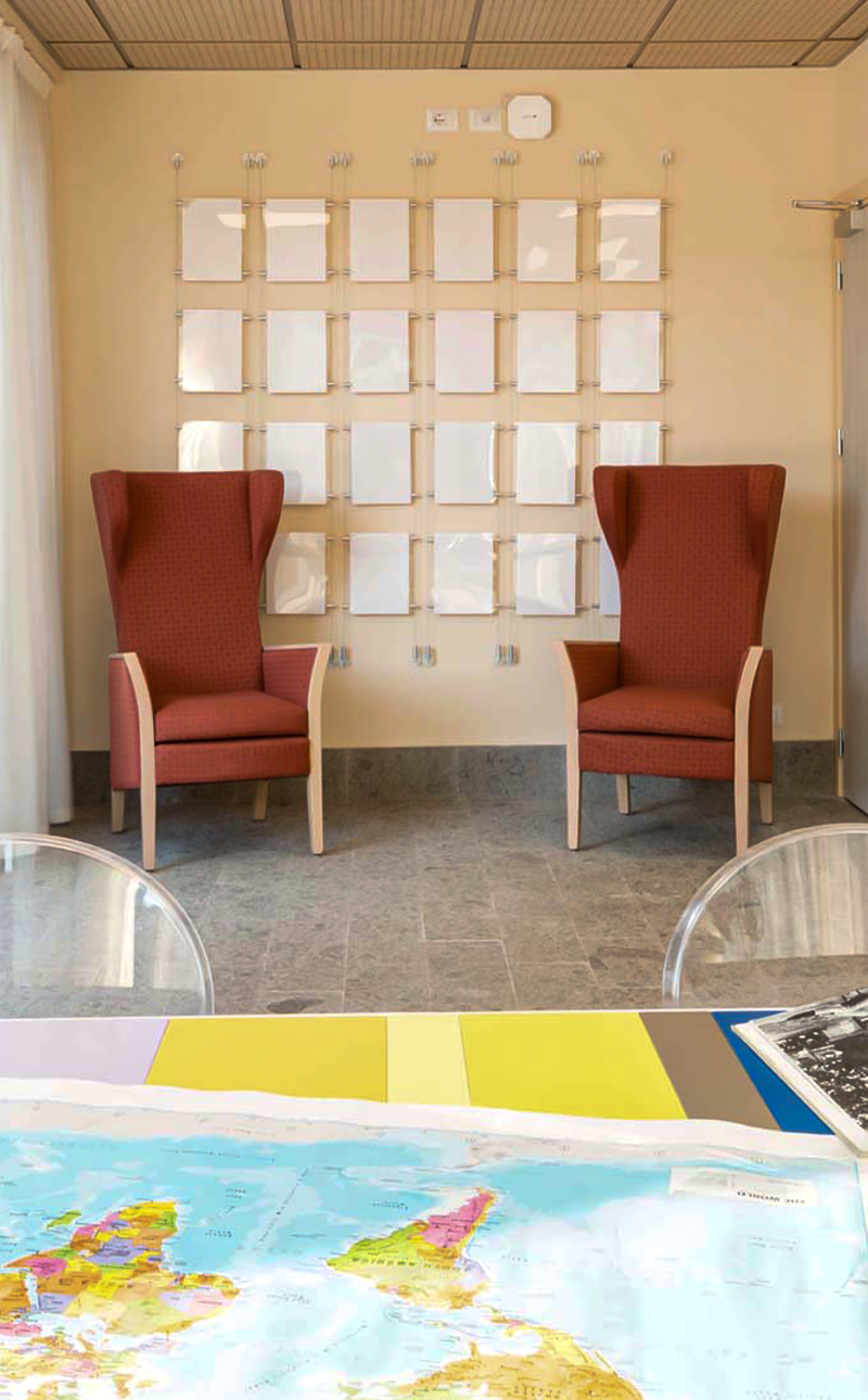 Accanto alla reception, una sala accogliente fa da punto di raccolta per le uscite e le attività collettive, interne ed esterne. I cartelloni informativi aggiornano settimanalmente sulle proposte disponibili.
