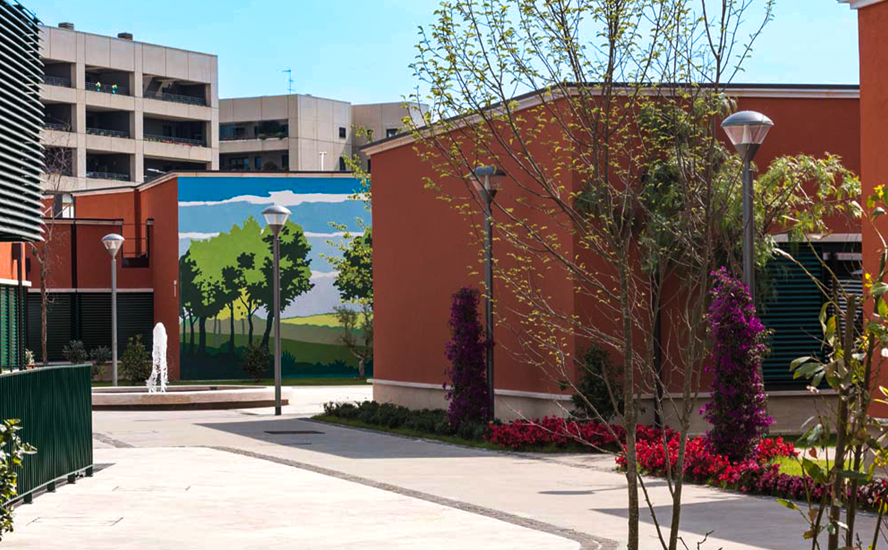 Giardini, fontane, panchine e una piazza centrale per incontrarsi e socializzare.